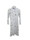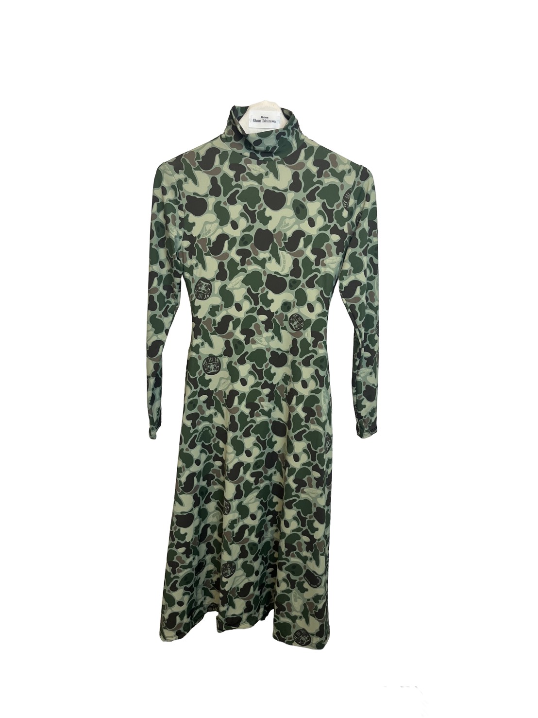 オリジナルのカモフラージュ柄にエイリアン、UFO、だるまを散りばめたデザインのセカンドスキンワンピース。「タトゥーを入れられない人でも、身体にアートをまといたい」というデザイナーの発想から生まれた一着です。